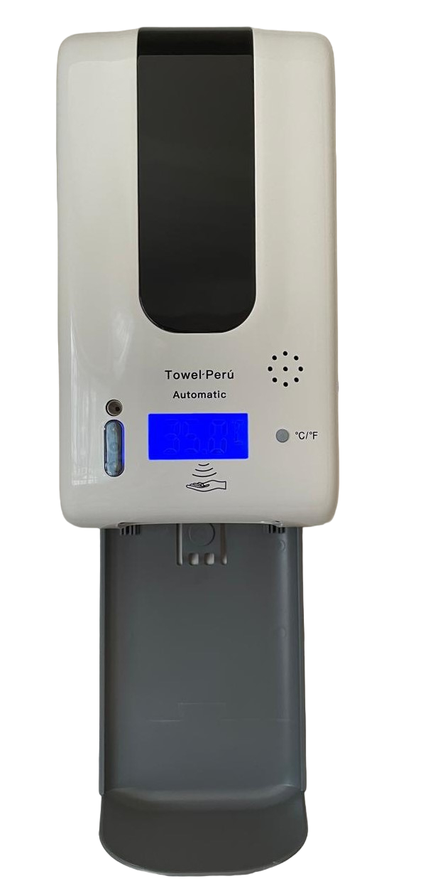 Inicio DISPENSADOR DE JABÓN Y ALCOHOL Dispensador de jabón liquido o alcohol gel con sensor automático, termómetro de temperatura y bandeja antigoteo